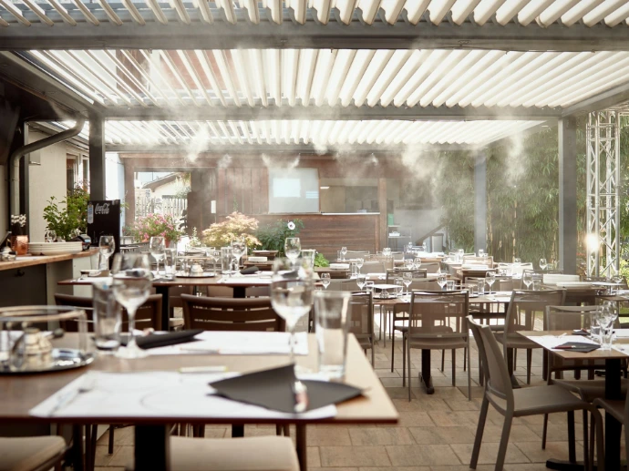Swiss engineering - For the Emirates - Motorised bioclimatic system - Misting